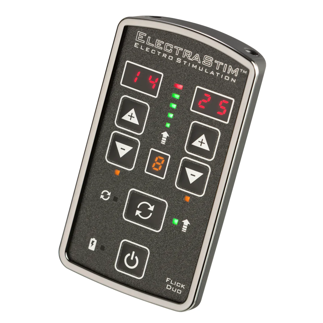 E-Stim-Steuergeräte (Control-Boxen, Power-Boxen) sind die Zentrale jedes E-Stim-Setups. Sie erzeugen die elektrischen Impulse und ermöglichen Steuerung von Intensität, Frequenz und Wellenform. Von einfachen Einsteiger-Geräten mit wenigen Stufen bis zu professionellen Multi-Kanal-Geräten mit programmierbaren Mustern. Meist mit 2-4 Kanälen für mehrere Elektroden gleichzeitig. Batterie- oder akkubetrieben. Essentiell für E-Stim!