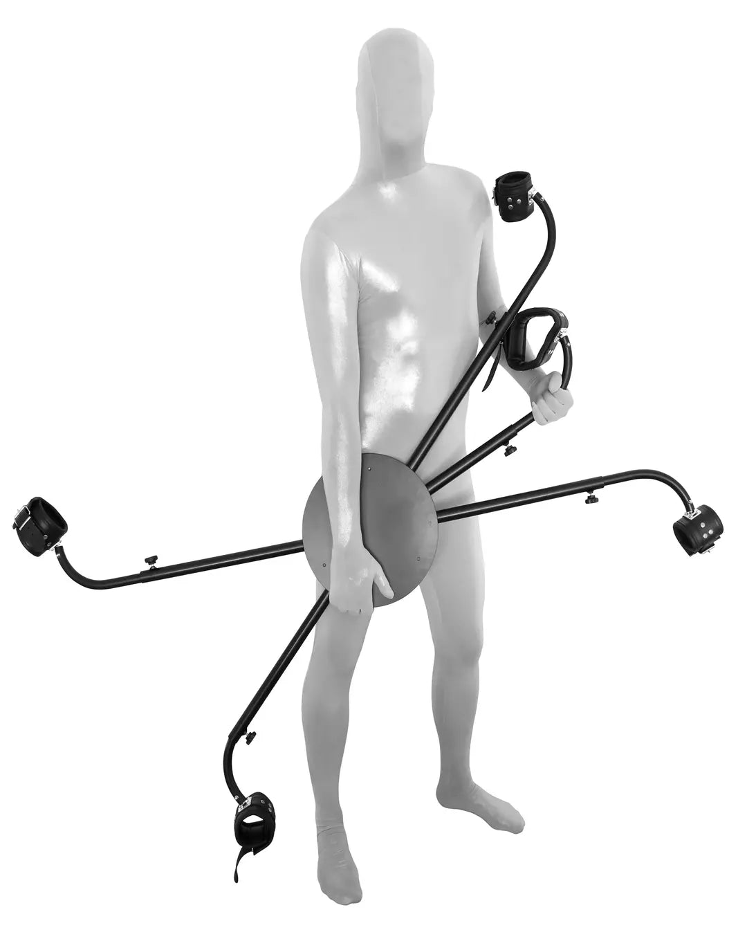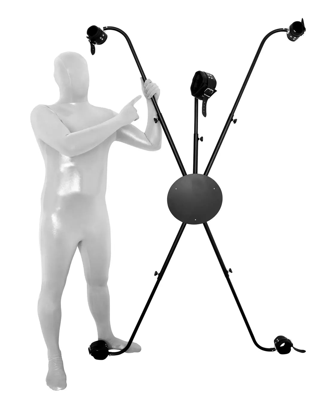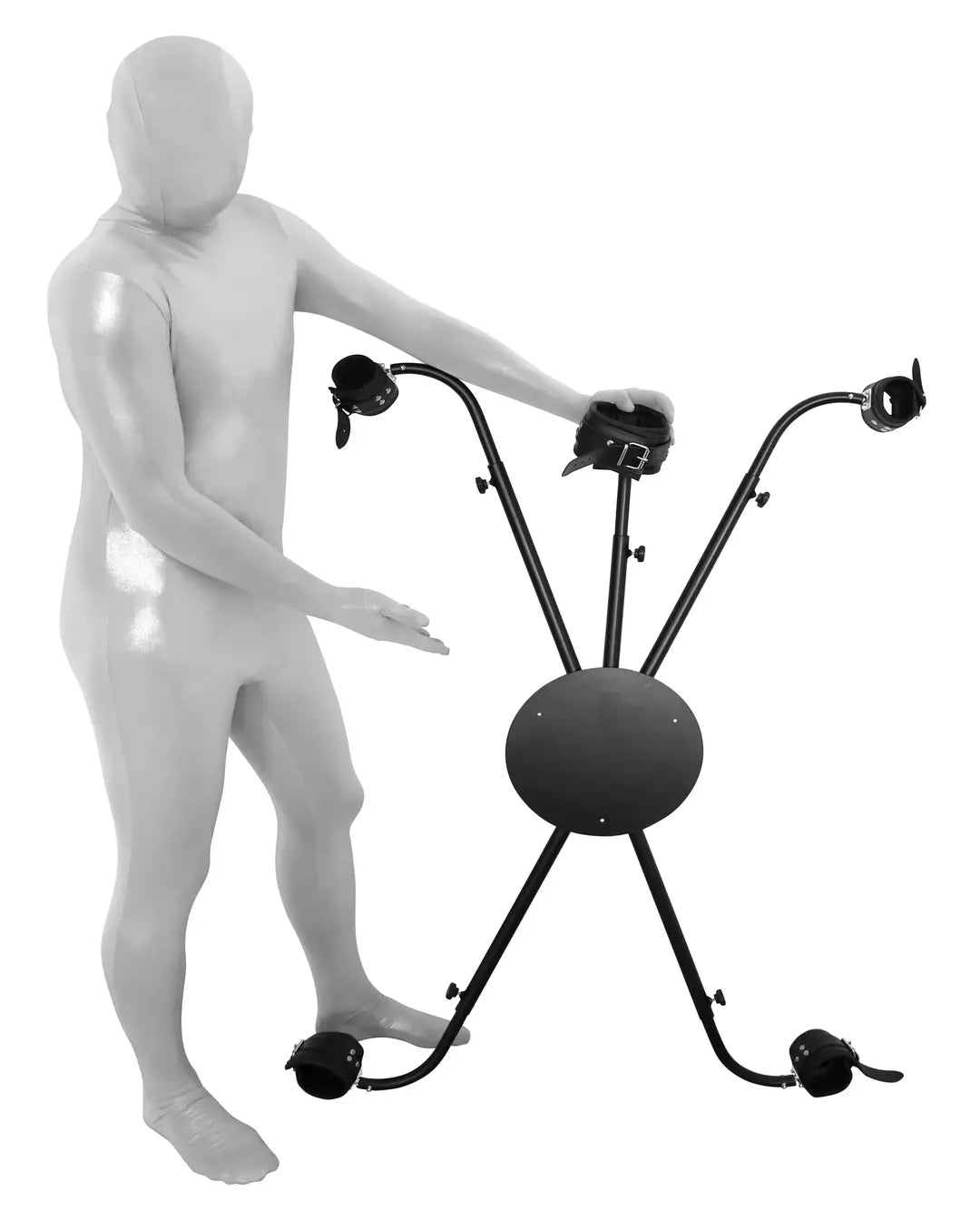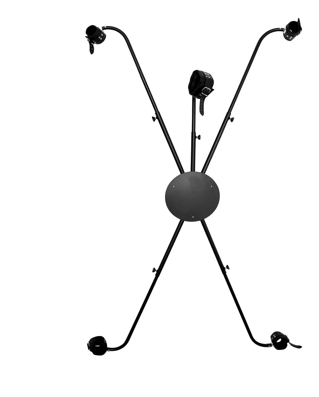 Im Lieferumfang enthalten sind vier hochwertige Hand- bzw. Fußfesseln, die sich flexibel an den fünf Kreuzarmen befestigen lassen. Die mitgelieferten Karabiner ermöglichen sichere und variable Befestigungsmöglichkeiten für unterschiedliche Bondage-Positionen.