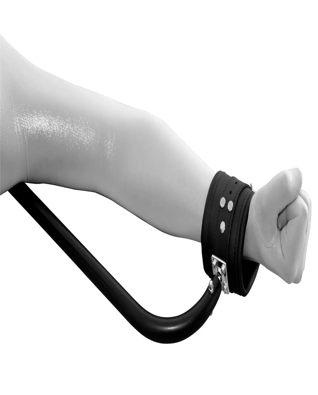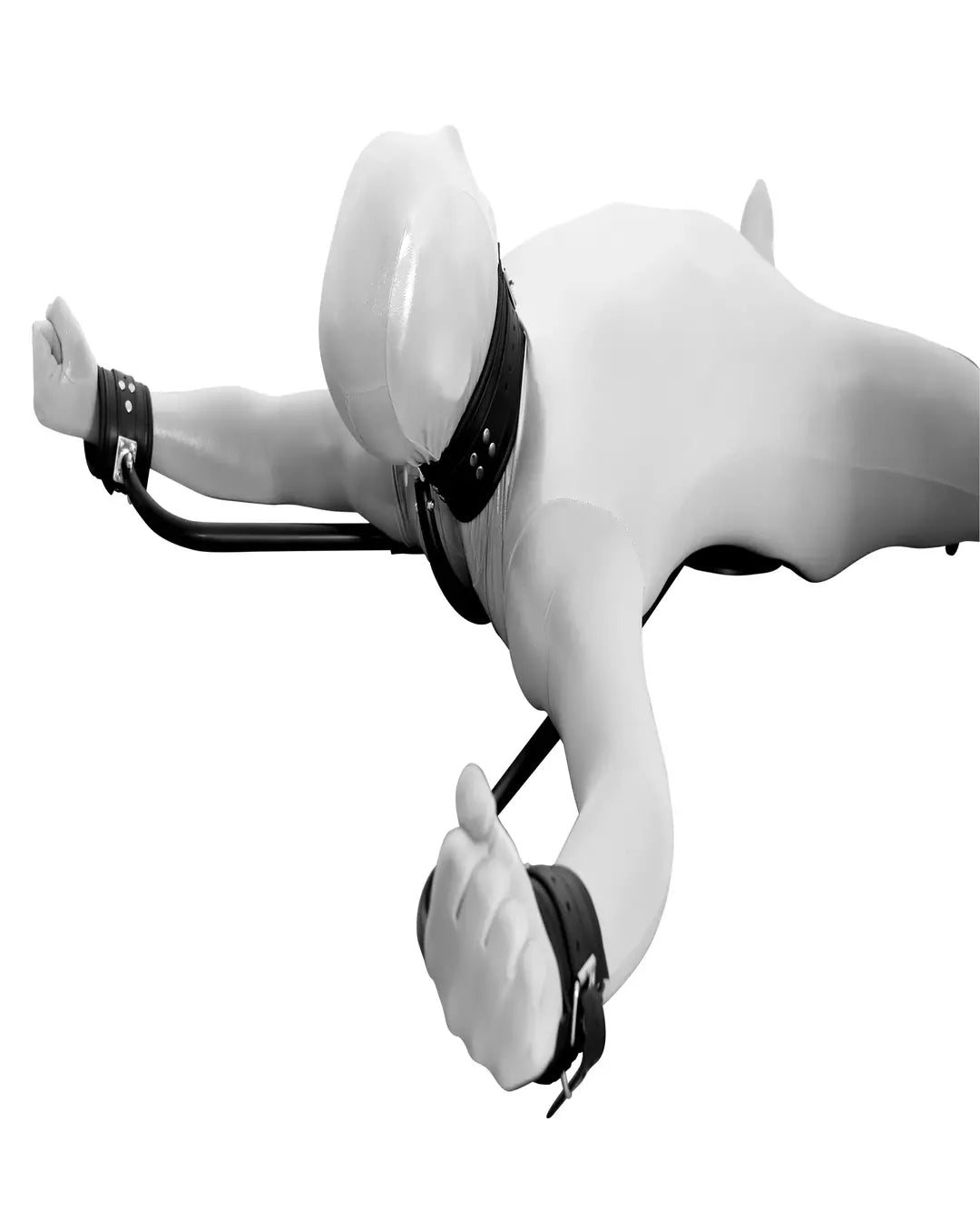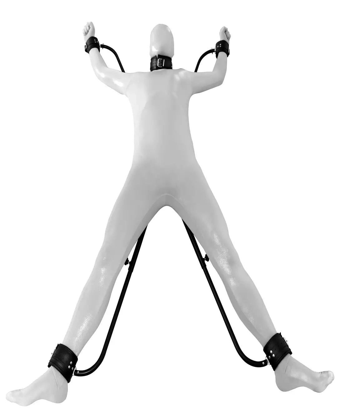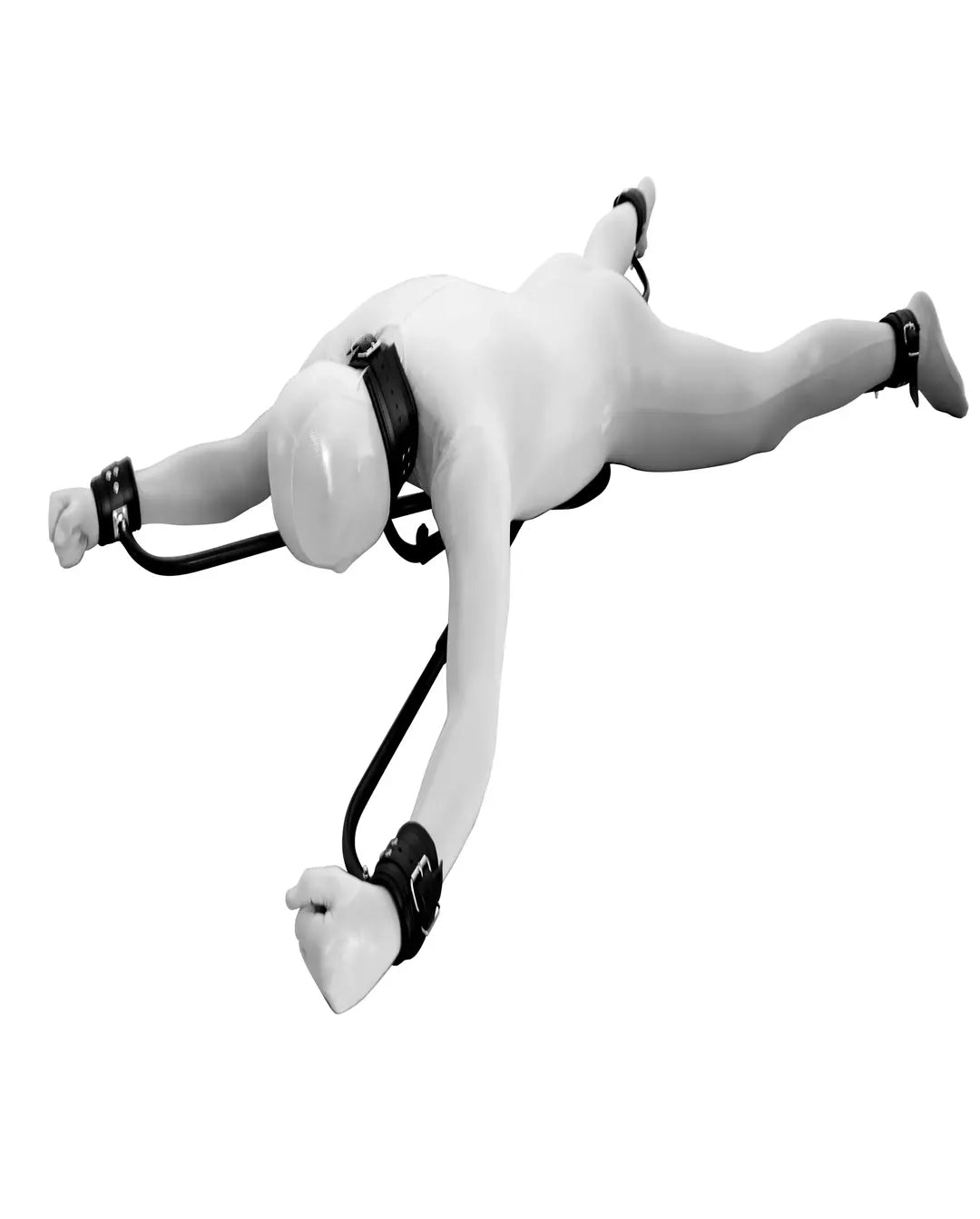 Im Lieferumfang enthalten sind vier hochwertige Hand- bzw. Fußfesseln, die sich flexibel an den fünf Kreuzarmen befestigen lassen. Die mitgelieferten Karabiner ermöglichen sichere und variable Befestigungsmöglichkeiten für unterschiedliche Bondage-Positionen.