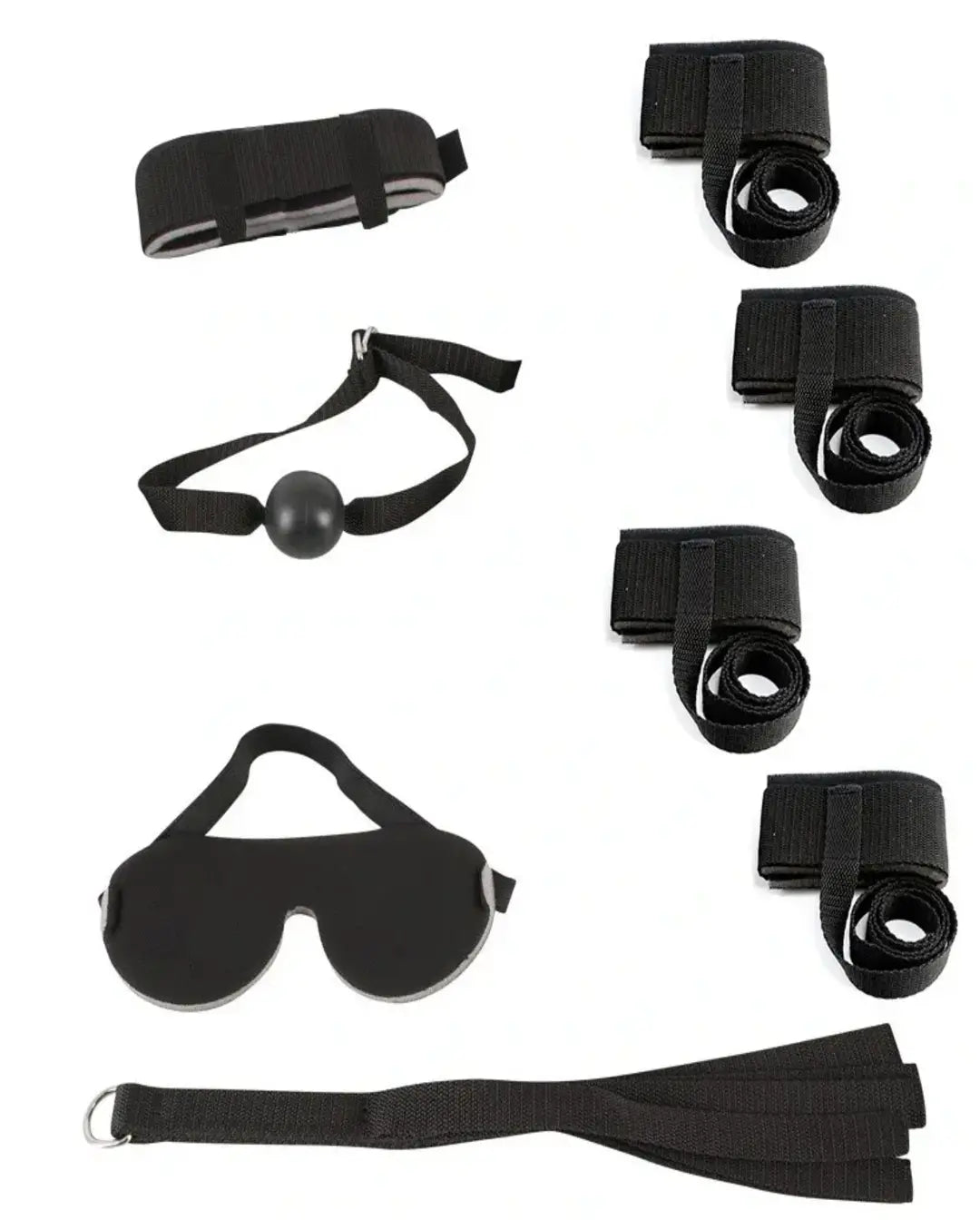 Der Queening Chair wird mit einem kompletten BDSM-Zubehör-Set geliefert: