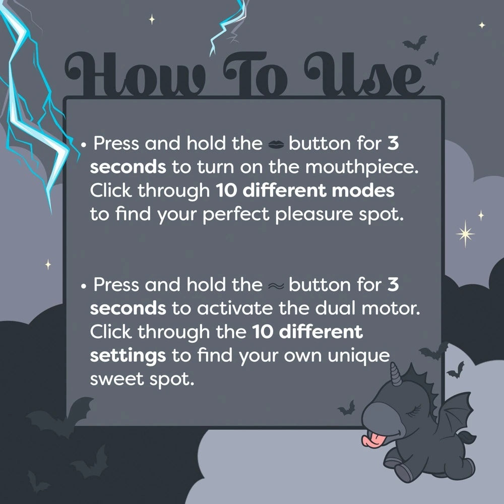 Gewicht: 150g | Material: Silikon | Stromversorgung: USB-aufladbar | Wasserdicht: Ja | Vibrationsmodi: Mehrfach | Besonderheit: Saugfunktion | Herkunft: China | SKU: 07013000000 | Barcode: 5037353009416 | HS-Code: 90191010 | Marke: Unihorn